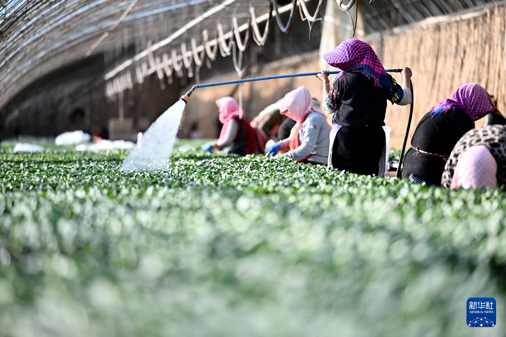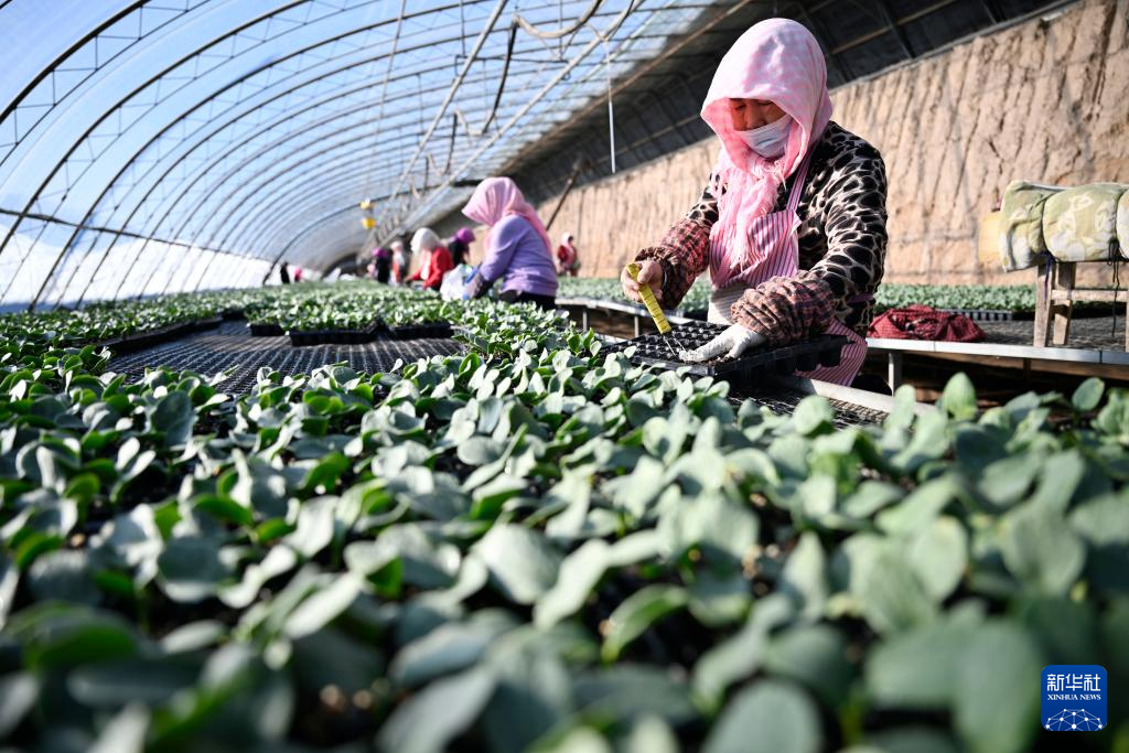 新春伊始,寧夏銀川市賀蘭縣育苗基地迎來節后育苗生產季,工作人員加緊培育各類瓜果蔬菜幼苗,為即將到來的春耕、春播做足準備。新華社記者 王鵬 攝