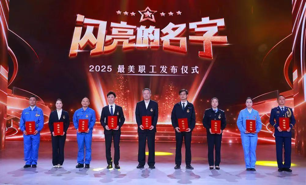 楊彥鋒(右三)等9人榮獲2025年“最美職工”稱號。