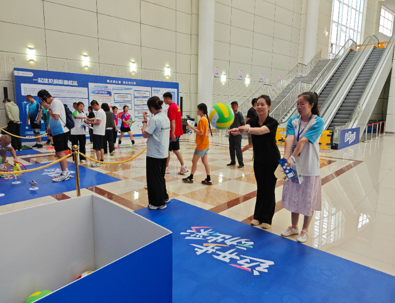 為助力全民健身戰略實施,寧夏體彩準備了豐富多彩的互動游戲。特別為本次賽事設計的“快樂排球”游戲,把運動技巧和體彩元素巧妙結合,引得運動員、觀眾和市民們紛紛加入。集章兌獎的小驚喜、主題拍照墻的歡樂瞬間,讓大家在玩鬧中愛上運動,在分享中傳遞“健康生活”的意義。賽場上的每一次起跳、人群中的每一聲歡笑,都在共同譜寫“全民健身 體彩同行”的美好故事。