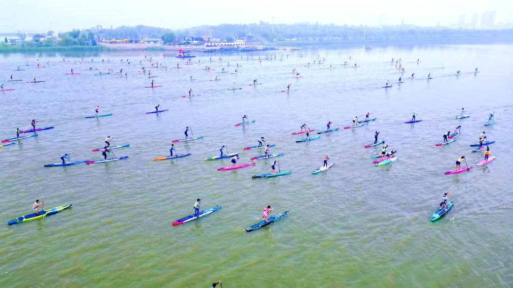 新華網銀川7月20日電(記者馬麗娟)7月19日,在寧夏石嘴山市星海湖旅游景區,由國家體育總局水上運動管理中心與石嘴山市人民政府共同主辦的2025年中國槳板精英賽石嘴山站啟幕,280余名來自全國各地的槳板健兒齊聚湖上,展開一場精彩角逐。