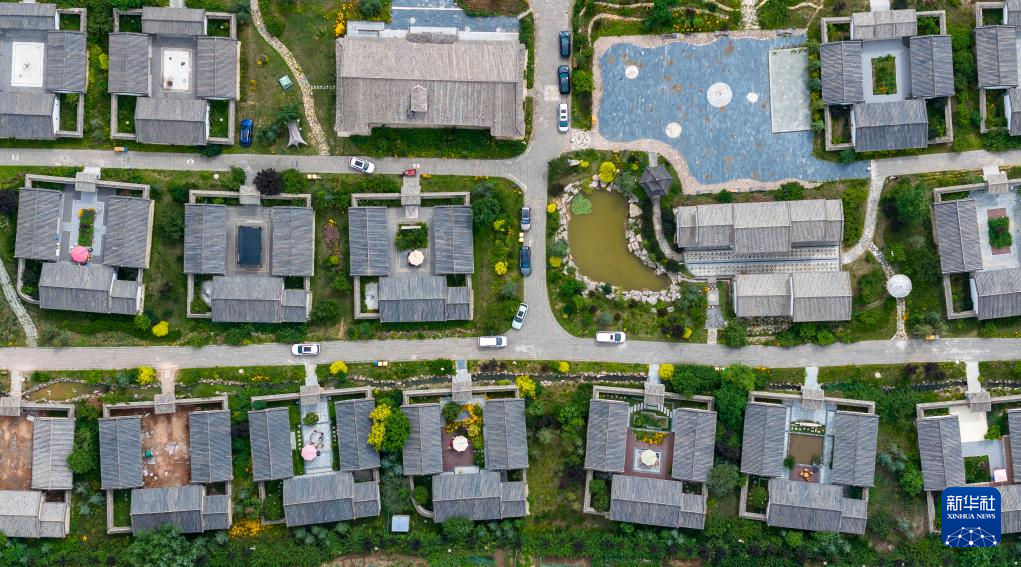 這是7月19日拍攝的寧夏固原市涇源縣香水鎮新月村香水風情堡民宿旅游區(無人機照片)。
