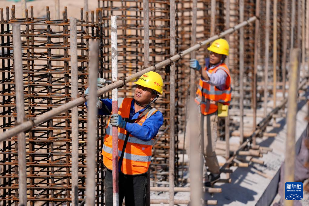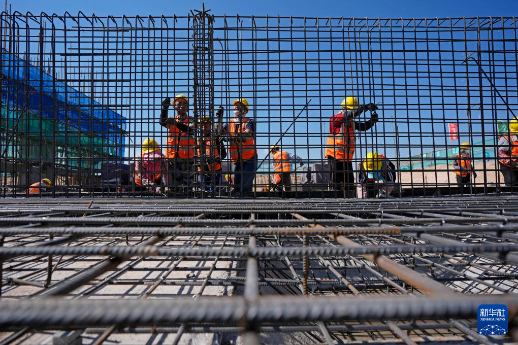 7月21日,中鐵十一局工人在中衛300萬千瓦光伏綠電項目3號330千伏變電站建設現場施工。