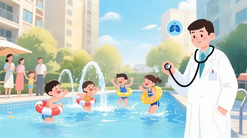 醫生提醒,暑期兒童戲水,家長應謹防溺水后遺癥。(圖片由AI生成)