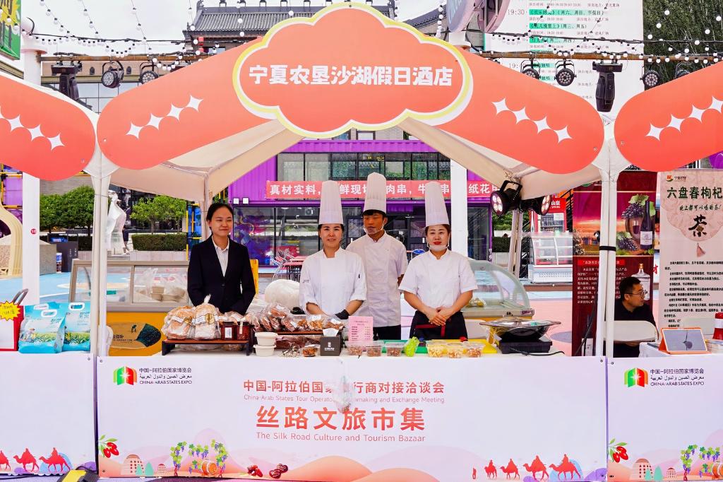 作為本次會議的重要配套活動,絲路市集于27日下午在銀川文化城·鳳凰幻城拉開帷幕,匯集了埃及、沙特阿拉伯、伊朗、尼泊爾等共建“一帶一路”國家的特色美食與手工藝品,以及山西、河南、四川、甘肅、青海等省市和寧夏的非遺文創和旅游商品,將持續至8月30日。