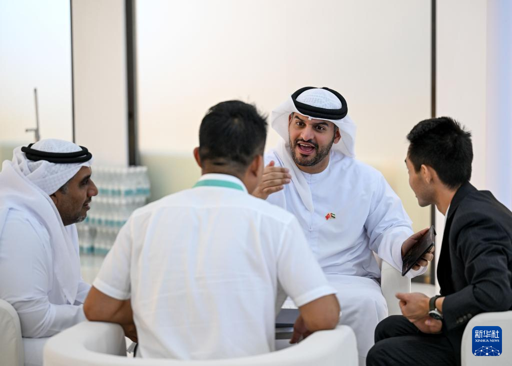 8月30日,在博覽會上,來自阿聯酋的參會人員(右二)與中國參展商洽談。新華社記者 馮開華 攝