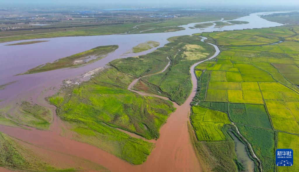 這是9月6日在寧夏石嘴山市平羅縣境內拍攝的黃河灘涂(無人機照片)。