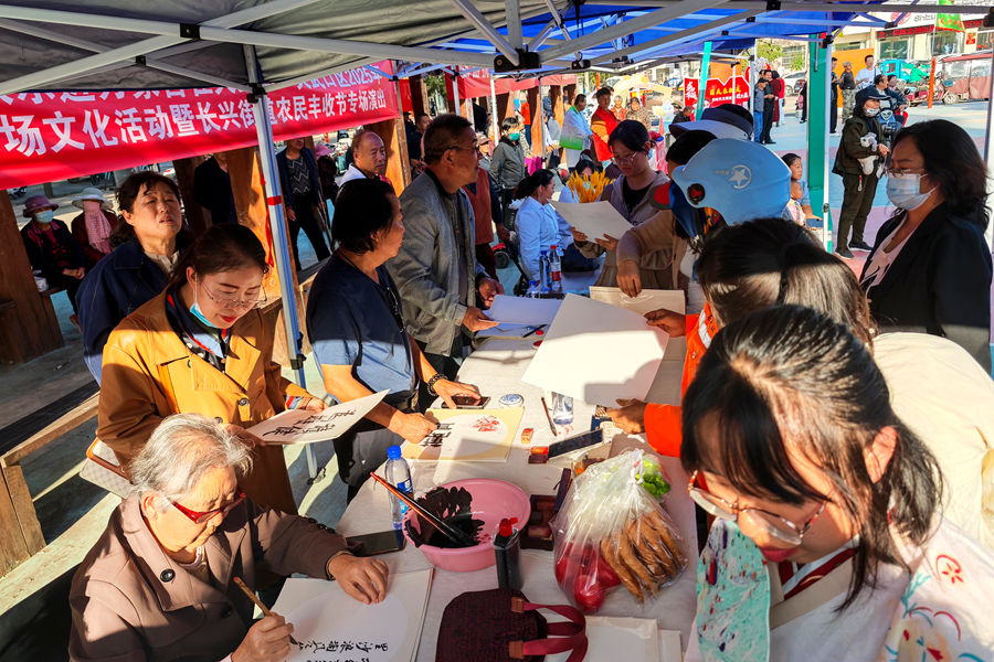 活動設置的便民服務區同樣人氣十足,義診、義剪、政策咨詢等10余個服務點位前排起長隊。社區衛生院的醫護人員組成義診團隊,為居民提供血壓測量、健康咨詢等專業服務;志愿者開展的義剪、按摩等“小微”服務精準對接民生需求;非遺手工布藝、古法制香、掐絲琺瑯、民間剪紙、漆扇制作以及書法筆會現場,參與者絡繹不絕,讓群眾零距離感受傳統文化魅力;由街道司法所、長城派出所等部門聯合設置的政策咨詢臺化身“移動課堂”,工作人員用通俗易懂的語言,面對面為群眾解答涉農補貼、法律援助、反詐騙、消防安全、國防教育等熱點問題,有效提升了居民的政策知曉率和安全防范意識。