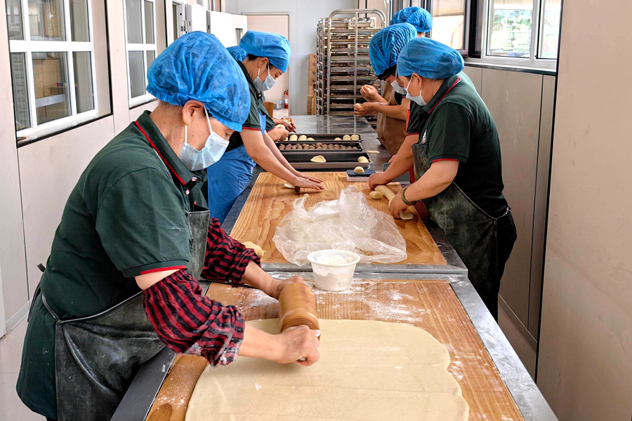 “以前在家只能圍著灶臺轉,沒想著還能靠做點心掙錢!在合作社的工坊里做月餅,一個月能掙2000多塊,日子踏實多了?!闭诎W的工人紀秀蘭滿臉笑意,“合作社專門請了師傅來教技術,從和面的軟硬度到餡料的配比,都教得特別細致。我們做的月餅味道好,價格也實惠!”