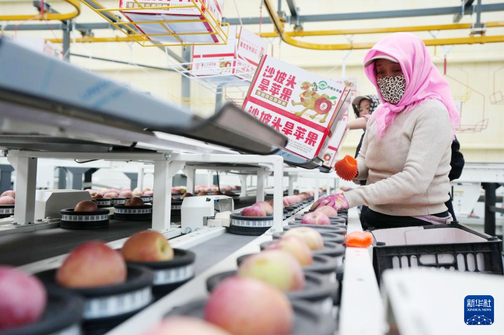 工作人員在中衛市沙坡頭區一家加工企業分揀“旱蘋果”(10月25日攝)。