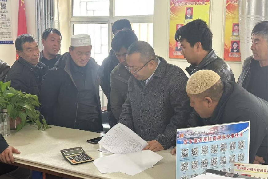 同心縣農商行工作人員到村部為養殖群眾現場辦理貸款。(受訪者供圖)